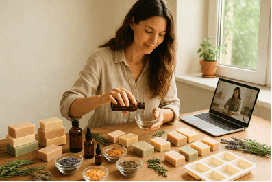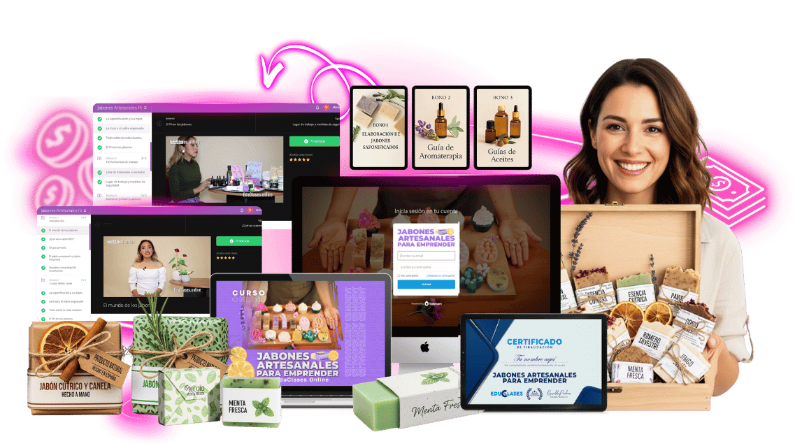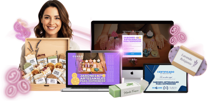 El curso online con la guía completa para crear jabones artesanales profesionales y lanzar tu negocio desde casa.
