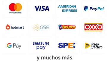 Aceptamos diferentes métodos según tu país: tarjetas de crédito y débito (Visa, Mastercard, American Express), PayPal, PSE, Oxxo, Nequi y Efecty.